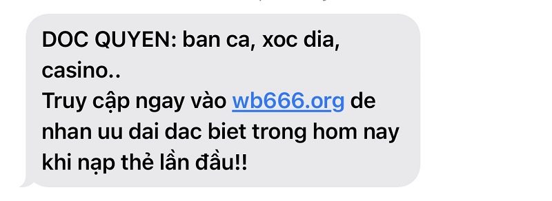 3. Các tin nhắn mời chào tham gia trò chơi cờ bạc trực tuyến