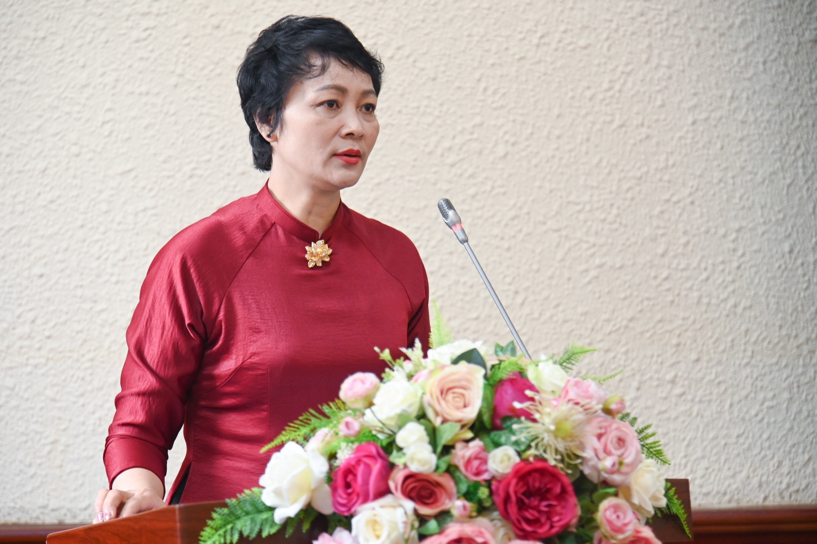 Chủ tịch Công đoàn Bộ Tư pháp Khương Thị Thanh Huyền biểu dương, ghi nhận những kết quả của Công đoàn cơ sở Cục Công nghệ thông tin