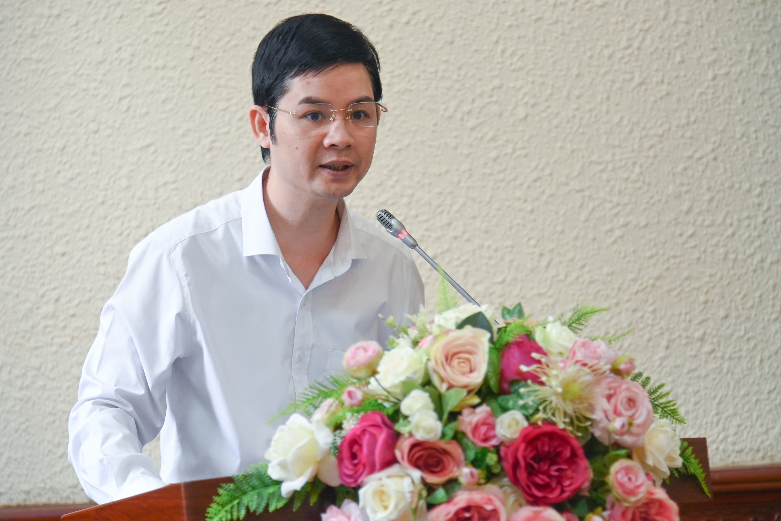 Đồng chí Trần Hoài Nam – Phó Chủ tịch Công đoàn Cục Công nghệ thông tin trình bày Báo cáo tổng kết hoạt động công đoàn nhiệm kỳ 2020 - 2023 và phương hướng hoạt động công đoàn nhiệm kỳ 2023-2028