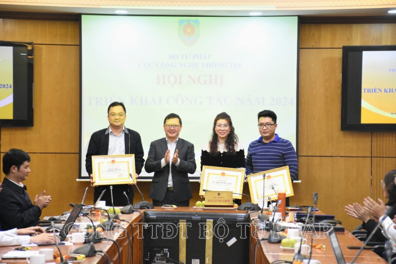 Nhân dịp này, thay mặt Ban cán sự Đảng, Lãnh đạo Bộ Tư pháp, Thứ trưởng Mai Lương Khôi đã trao tặng Bằng khen của Bộ trưởng Bộ Tư pháp cho các cá nhân có thành tích xuất sắc trong công tác của Cục Công nghệ thông tin./.